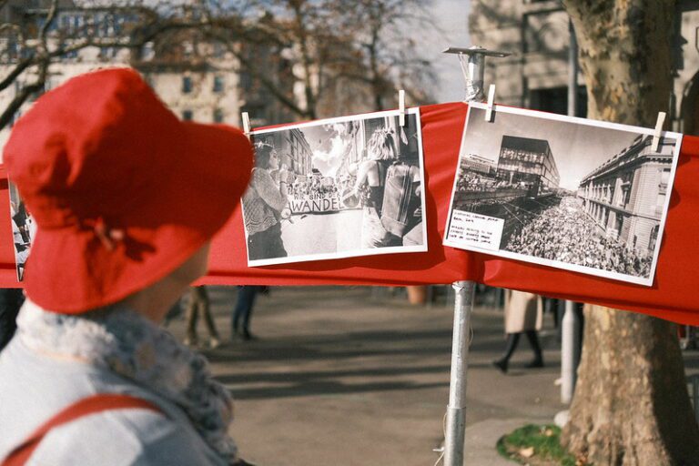 Der vergangene Samstag fühlte sich eher wie ein Sommertag als ein spätherbstlicher Tag Mitte November an. Ein viel zu warmer Tag, der einmal mehr an die Dringlichkeit des Klimawandels erinnerte. Und doch brachte der Sonnenschein etwas Gutes mit sich: Viele Menschen fanden ihren Weg zu unserer Pop-up-Ausstellung in Zürich. Zwischen Bildern von Protest, sozialen Bewegungen und weltweiten Widerstandskämpfen entstand ein lebendiger Ort des Austauschs und der Solidarität.