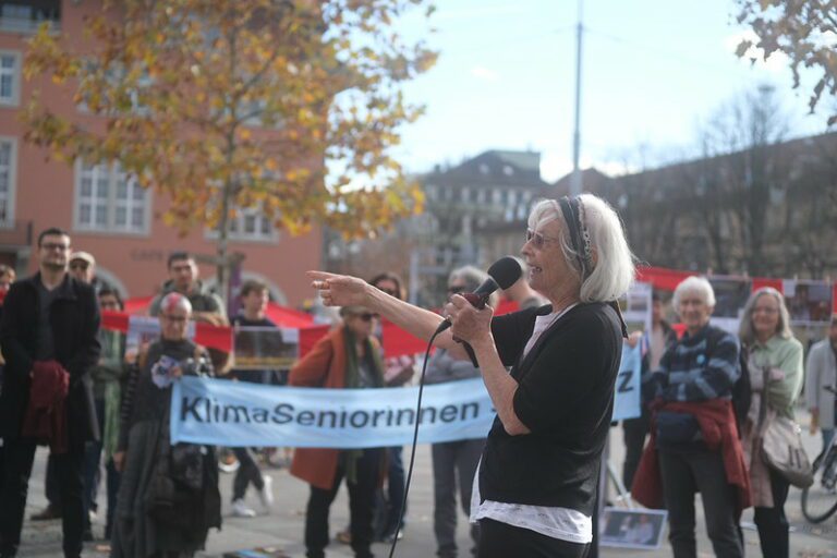 Les discours prononcés lors du rassemblement ont montré la grande solidarité de notre mouvement. Ont pris la parole des représentant·e·s de la diaspora congolaise en Suisse, des militant·e·s du mouvement mondial pour la justice climatique Debt for Climate et d’une organisation partenaire brésilienne RAMA de Maranhão, des représentant·e·s de Strike WEF et BreakFree ainsi que les Aîné·e·s pour le Climat, qui luttent depuis des années pour la justice climatique. L’événement a été organisé conjointement par Campax, BreakFree, Collective Climate Justice, Swiss Youth for Climate et Debt for Climate : une alliance forte qui montre la diversité et la puissance du mouvement climatique en Suisse et dans le monde.