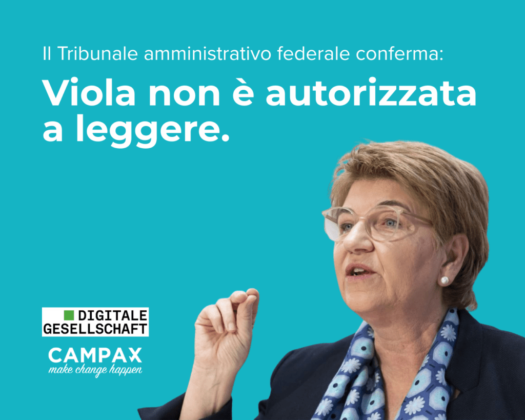 Democrazia invece di uno Stato di sorveglianza: più di 15’000 persone hanno firmato per fermare l’ordinanza “LSCPT” Immagina che i tuoi dati ti appartengano: è così che dovrebbe essere, no? Lo pensiamo anche noi e più di 15’000 firmatari/e! Per questo la settimana scorsa abbiamo presentato a Berna la petizione «Democrazia invece di uno Stato […]